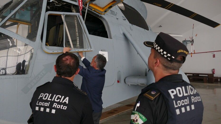 La Policía Local de Rota se ha encargado de abrir paso durante el trayecto, que se ha completado de forma rápida y sin obstaculizar el tráfico -a diferencia de lo que ocurrió con el helicóptero que se trasladó en febrero que tenía mayor envergadura y dificultades obvias por su gran dimensión.