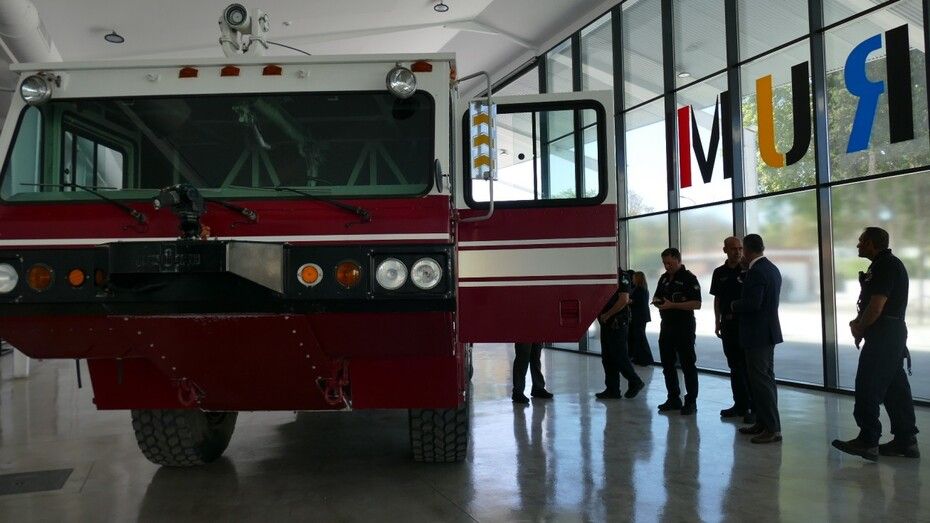 Poco a poco el Base Forum se va llenando de contenido y esta mañana, se ha incorporado a este espacio que reflejará parte de la influencia de la Base Naval de Rota en la localidad, un nuevo vehículo. Se trata de un camión de bomberos tipo P-19 Airport Rescue Fire Fighting, un vehículo de pista de aeropuerto, que la US Navy ha cedido al Ayuntamiento de Rota para colaborar de forma estrecha con un proyecto que es muy amplio y que pretende reflejar cómo la presencia militar de la Base Naval ha influido en Rota a todos los niveles, económico, urbanístico, social y cultural.