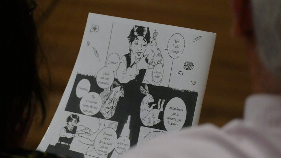 Para ello, los cuatro alumnos representantes de la quincena que han participado, han subido al atril y han compartido su aportación al Fanzine, bien en forma de cómic, de poesía o de relato, indicando todos, que ha sido una vía para mostrar sentimientos o inquietudes porque al final, se trata de eso, de usar la literatura o el arte para manifestarse, como han dejado claro todos.