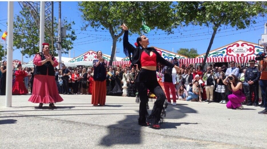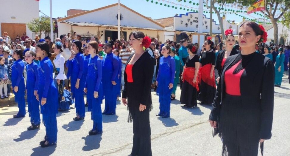 Tras el izado de las banderas, la calle principal del Real ha sido tomada literalmente, por el baile flamenco de las alumnas y alumnos de las cuatro academias de baile que hay en la localidad, para participar en un flashmob que ha ambientado desde el primer momento la feria.