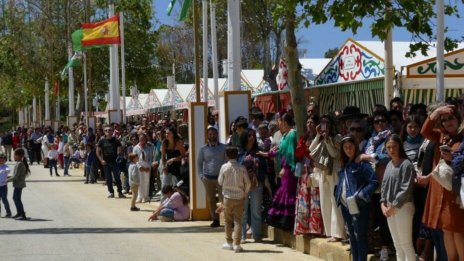 Los roteños disfrutan desde este mediodía de su Feria de Primavera y lo hacen aprovechando el festivo del Día del Trabajador, lo que está permitiendo a muchos ciudadanos adelantar unas horas de diversión, ya que los actos oficiales se han trasladado a la mañana y ha congregado a un mayor número de público que otros años. Y es que en esta 81 edición, la feria se vive por adelantado, una decisión que ha sido acogida de muy buen grado y apoyada por los caseteros que han cambiado las habituales cenas de socios del miércoles noche a la hora del almuerzo. Eso ha hecho que el Real estuviera lleno en el momento de la izada de las banderas en el centro del recinto ferial.