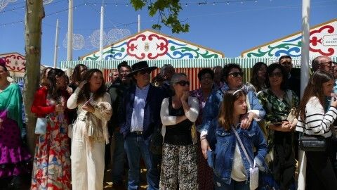 Las sevillanas, que es el baile andaluz por antonomasia en la feria, ha copado buena parte de la primera mitad de la jornada de feria dejando una estampa única y muy bonita antes de que comenzaran las comidas de socios.