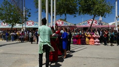 Banderas y flamencas en el Real para dar el pistoletazo de salida a la Feria de Primavera de Rota