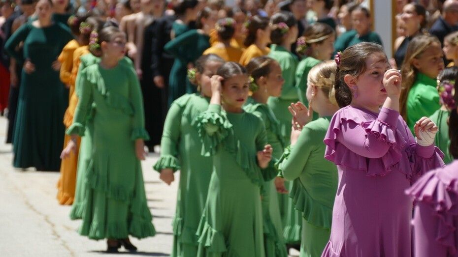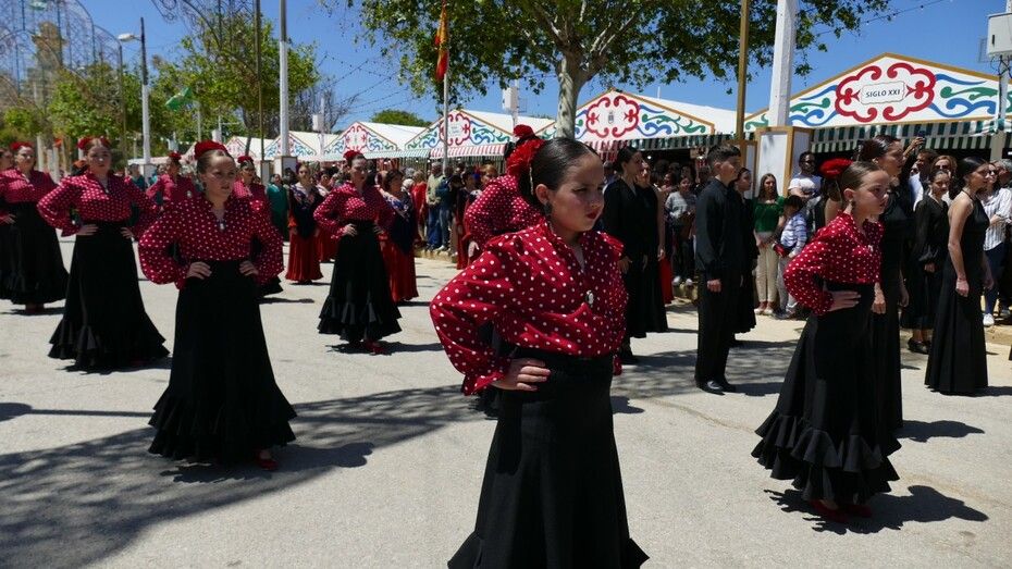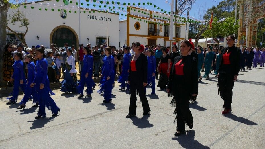 Os dejamos una galería más amplia del flashmob que se ha podido disfrutar esta mañana de miércoles en el inicio de la Feria de Primavera de Rota, tras el izado de las banderas, gracias a las bailaoras y bailaores de las cuatro academias de la localidad que dirigen Laura Pirri, Rocío Sánchez, Ivonne Trigo y Ofelia Márquez.