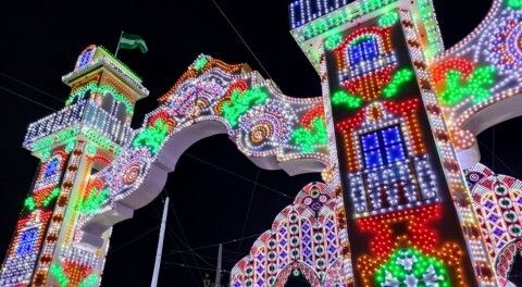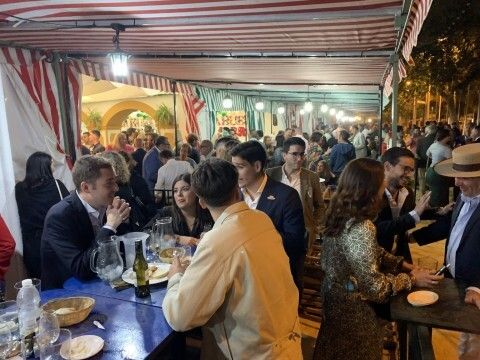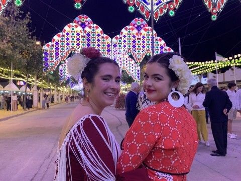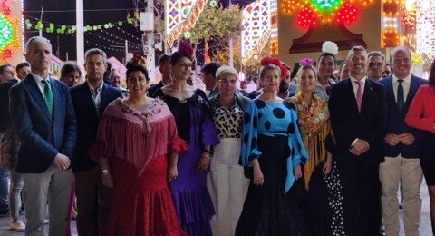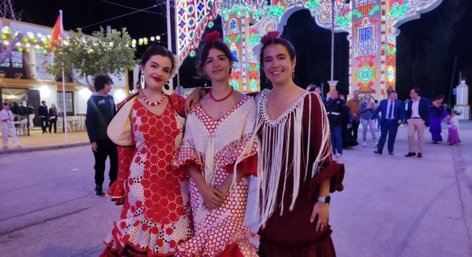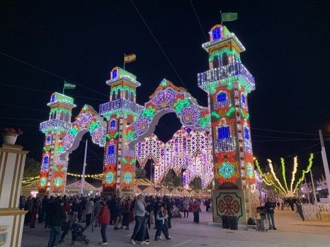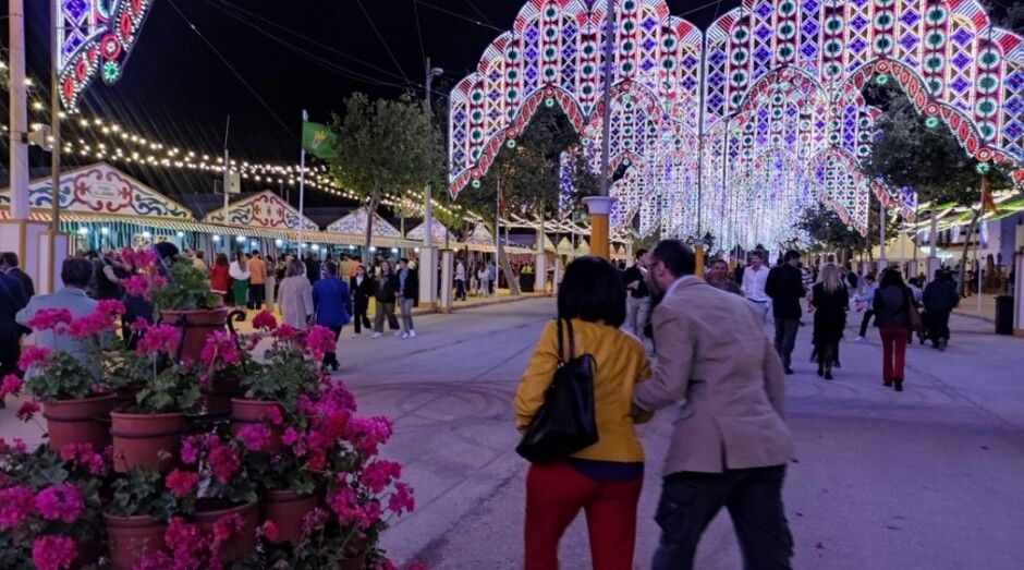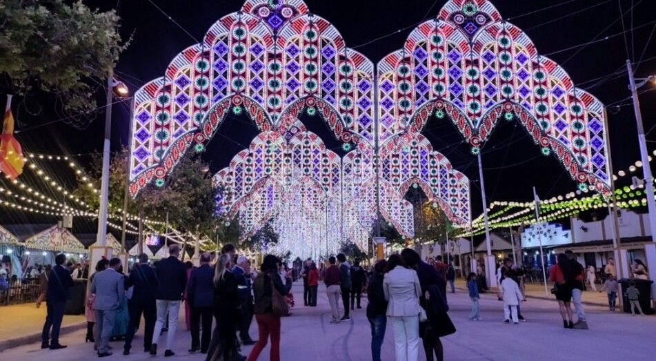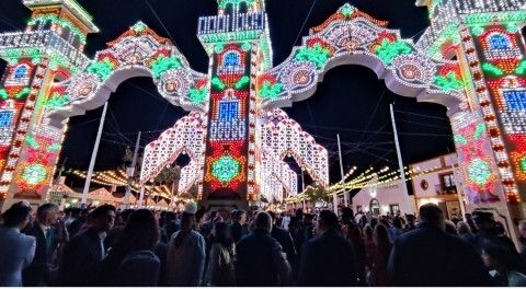 El color se ha adueñado de las calles que lucen con pórticos grandes y luminosos que completan este primer día de feria que empezó pronto, a las 13.30 horas, con el acto de izado de las banderas para la inauguración oficial.