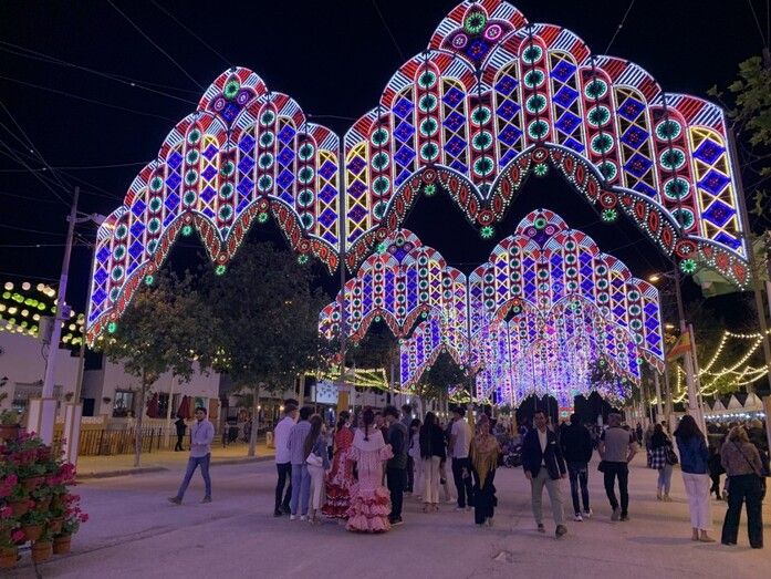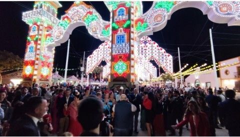 Este año, el encendido del alumbrado extraordinario no ha sido el primer acto oficial de feria, sino que completa una jornada intensa, ya que los roteños han aprovechado el festivo del 1 de mayo para tener unas horas de más de esta fiesta y empezarla de día en vez de por la noche. Por tanto, hoy en este breve acto en el que se activaban miles de bombillas leds que darán color a la Feria de Primavera casa noche, había más público de lo normal. Muchos llevaban desde mediodía, lo que se notaba en el ambiente más festivo y con los motores ya en marcha.