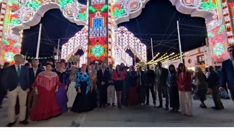 Miles de bombillas alumbran ya el Real de la Feria de Primavera. Este año, el alcalde de Rota, Javier Ruiz, y la delegada de Fiestas, Esther García, han cedido el honor a las cuatro bailaoras roteñas Laura Pirri, Ofelia Márquez, Ivonne Trigo y Rocío Sánchez que han sido las encargadas de activar el interruptor situado en la portada principal del recinto ferial, acompañados de miembros de la Corporación municipal, autoridades civiles y militares, además de muchos ciudadanos.