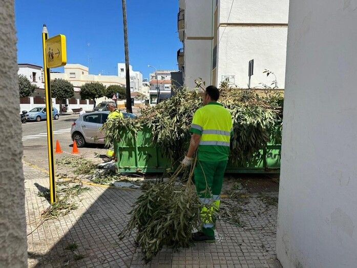Trabajadores de la delegación de Parques y Jardines del Ayuntamiento de Rota están en estos días poniendo a punto el arbolado del parque 'San Fernando' que con los temporales del pasado invierno quedó muy afectado y podía poner en peligro la seguridad de los usuarios.