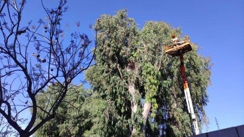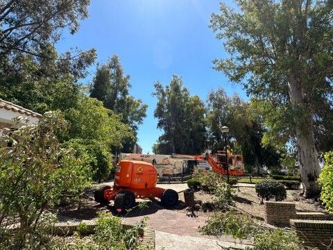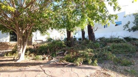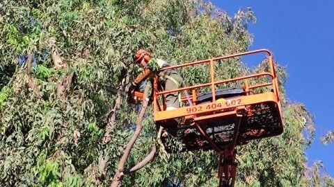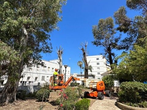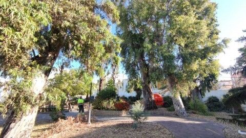 En el parque 'San Fernando' se trabaja en estos días en la poda de los eucaliptos por seguridad, ya que había ramas que se habían quedado muy debilitadas y otras prácticamente tronchadas que había que retirar por precaución y seguridad para todos.