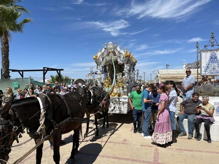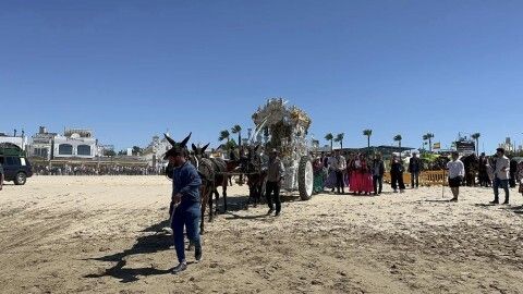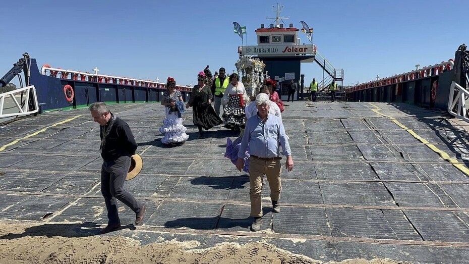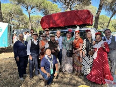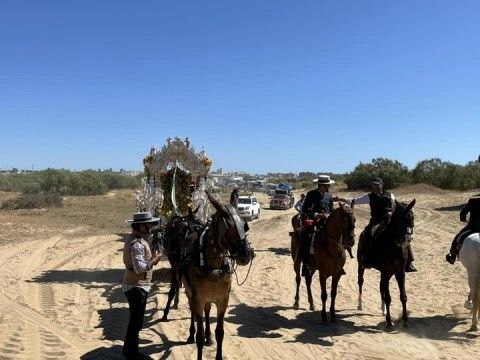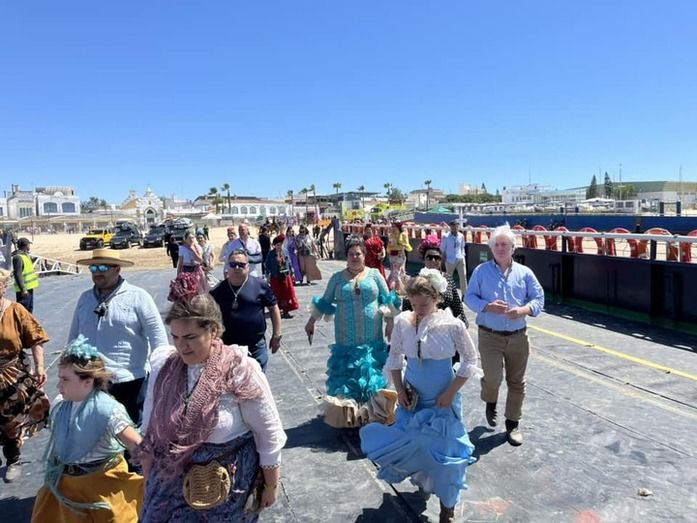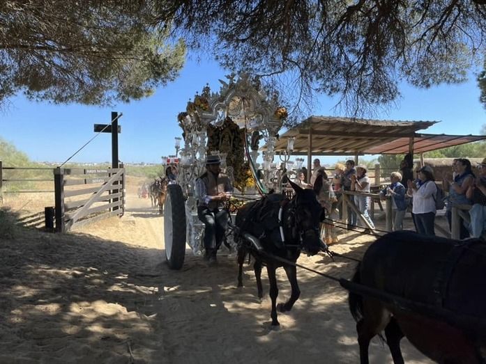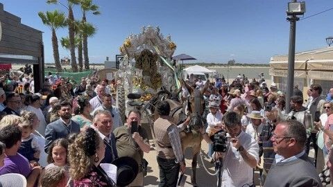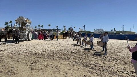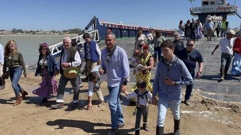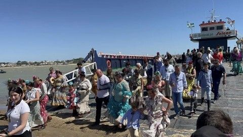 Allí, sobre las 4 de la tarde y con un recibimiento caluroso como siempre, con visita a la capilla del Carmen donde se ha rezado, se han dirigido hasta Bajo de Guía donde han realizado el embarque para cruzar la desembocadura del río Guadalquivir y continuar por Doñana.
