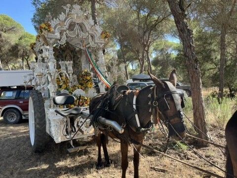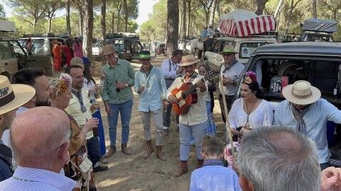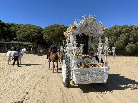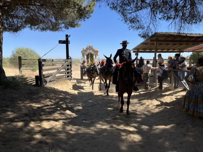 La Hermandad del Rocío ya está en el parque Doñana para su primera noche en el camino