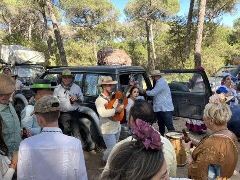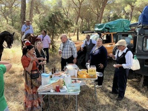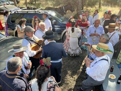 Con viento y temperatura fresca están los romeros en estas primeras horas de peregrinación aunque eso no impide momentos de cante, baile y convivencia, que marcan las largas jornadas a pie, a caballo o en coche.