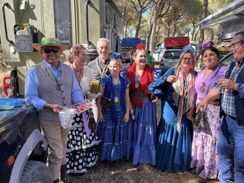 La Hermandad del Rocío de Rota avanza y ya está en el parque Doñana donde esta noche harán su primera parada del camino hacia la aldea almonteña. Tras salir de la localidad sobre las 11 de la mañana, hacer parada en la explanada del cementerio para rezar el Ángelus y tener el primer momento de convivencia, la comitiva compuesta por 500 rocieros roteños han continuado su camino hasta Sanlúcar.
