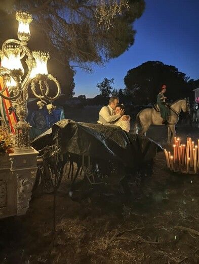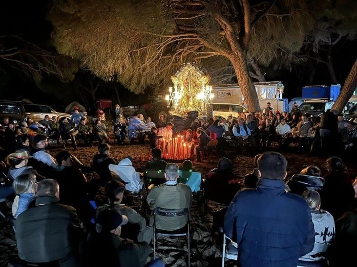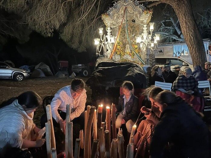 Esta noche pernoctarán en el Corral de Félix, y se vivirán de nuevo en torno a la luz de las velas y cerca de la carreta que porta el Simpecado, nuevas emociones y vivencias propias de esta peregrinación.
