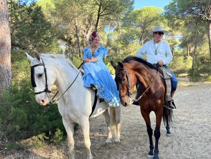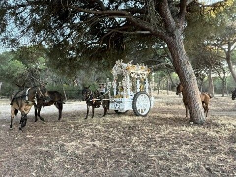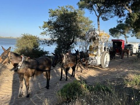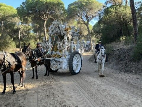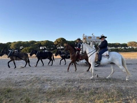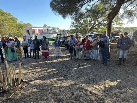Muchos momentos de convivencia, rezos, fe y hermandad se están viviendo en este segundo día de camino en el que tras pasar la noche en el Palacio de Marismilla, recoger la acampada y celebrar la misa, los rocieros roteños emprendían de nuevo la ruta.