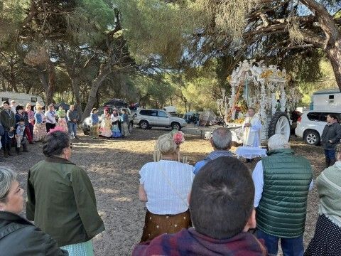 Sin contratiempos, con viento de poniente pero con buen ambiente continúa la Hermandad de Nuestra Señora del Rocío de Rota su camino por las arenas para llegar mañana jueves a la aldea de El Rocío y participar de la multitudinaria romería en honor a la Blanca Paloma.