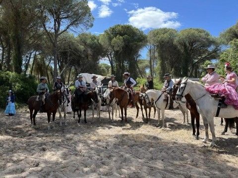 Destaca siempre el buen ambiente en la hermandad que hace por unir al gran grupo que canta, baila y comparte comidas y bebidas en cualquier parada. La primera hora de la mañana, la media mañana y la noche son momentos claves para el rezo con la misa, el rosario y el Ángelus, pero todo ello va salpicado indiscutiblemente, de momentos festivos.