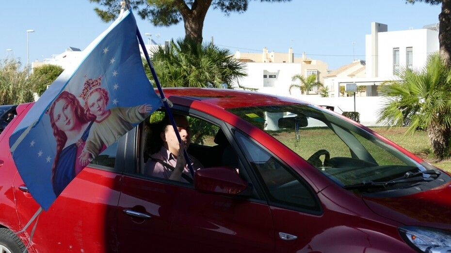 Una parada habitual es la de la rotonda dedicada a María Mazzarello, cerca del colegio de las Salesianas hasta el que también han llegado para compartir este mensaje de fe en la virgen.