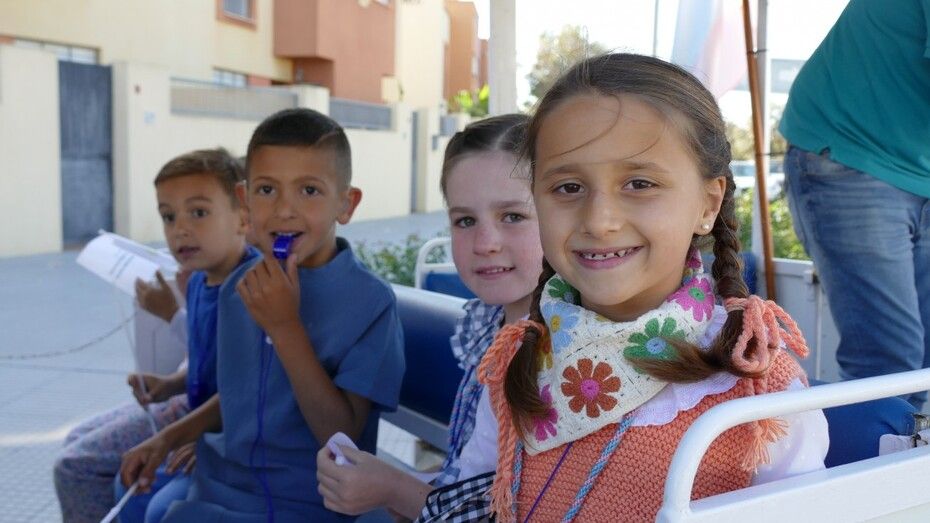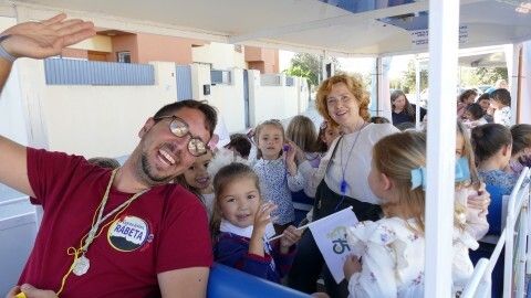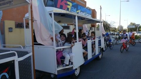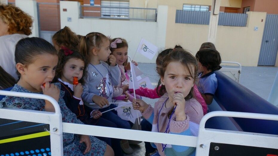 Una de las actividades que se han celebrado en la calle y que es ya todo un clásico, es la Caravana de la Alegría del colegio Salesianos, que ha tenido lugar esta tarde de viernes. El tren turístico con algunos de los alumnos de infantil y Primaria, padres en bicicletas y otros en coche, con banderas rosas y celestes, han recorrido algunas calles de la localidad, con pitos y dejando un rastro de alegría con el anuncio de la festividad de María Auxiliadora.