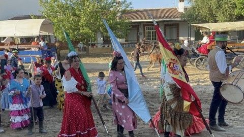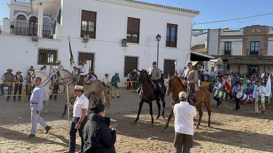 Piteros abriendo camino, algunos caballos, banderas y varas portadas por hermanos formaban un cortejo que llegaba a la ermita con ilusión.