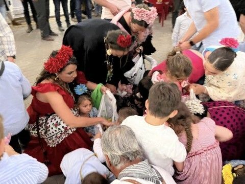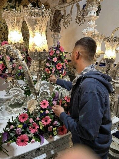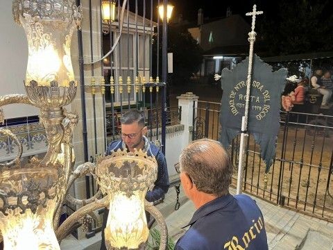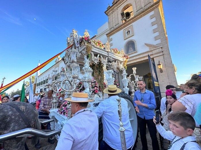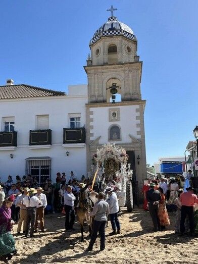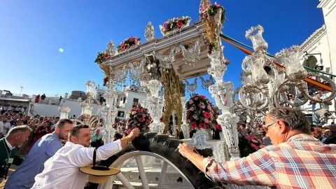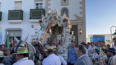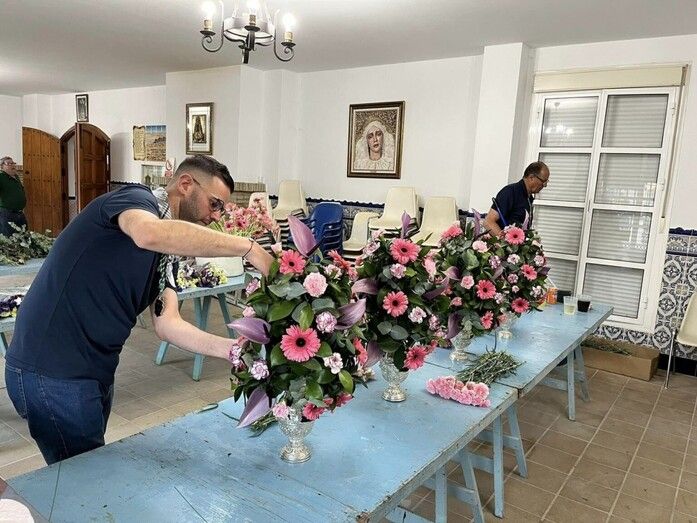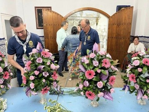 Desde la Casa Hermandad de Rota, que destaca por ser una réplica de la Torre de la Merced, se preparaba esta mañana todo lo necesario para engalanar la carrera blanca que porta el Simpecado con flores y para lucir esplendorosa ante una multitud que esperaba con ganas este momento.