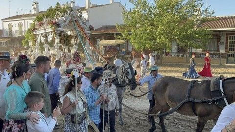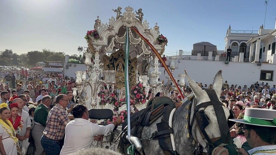 Este es uno de los momentos más destacados de la romería, que se vive con mucha intensidad y emoción al ponerse delante de Nuestra Señora del Rocío. Con cante, vítores a la virgen y momentos de fe y recogimiento interior, se vivía esta presentación que siempre hace saltar alguna lágrima.