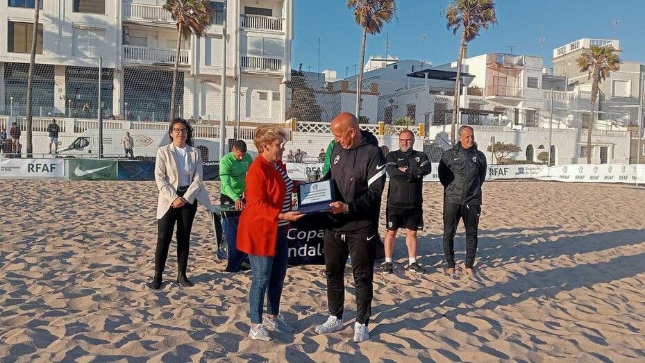 En el acto también estuvo la delegada de Deportes de Chipiona, Laura Román, ya que en la vecina localidad chipionera también se han celebrado algunos partidos en el desarrollo de esta copa en la que se han dado cita 13 equipos andaluces.