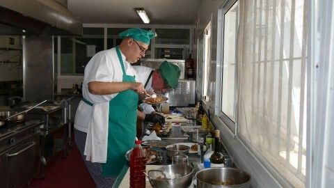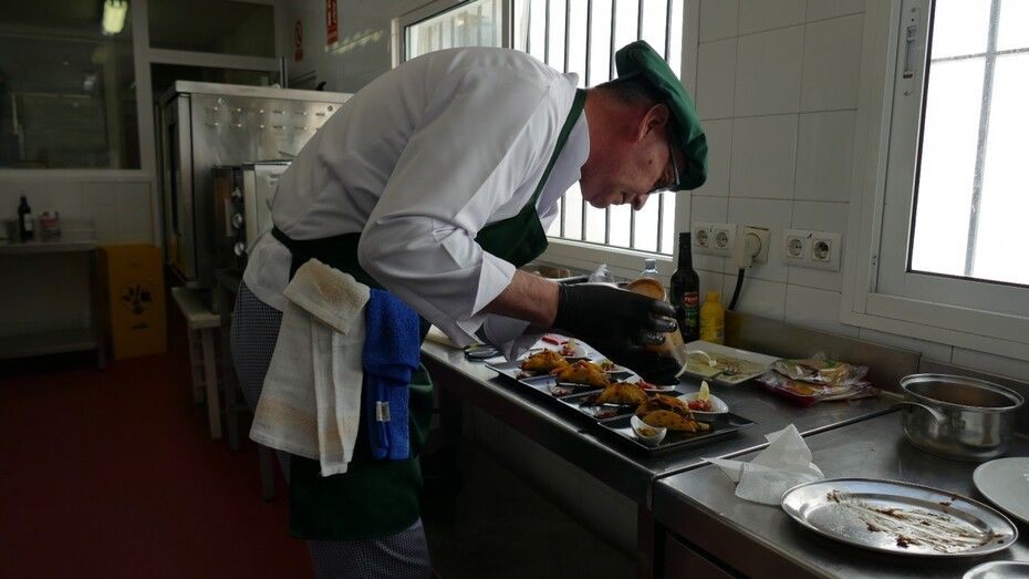 En las cocinas del pabellón municipal trabajaban desde esta mañana Mercedes, Rubén y Ángel José concentrados en sacar sus platos en tiempo para presentarlos a un jurado compuesto por Alejandro Luna Guerrero, profesor del IES Arroyo Hondo; Esther García, delegada de Turismo y Comercio del Ayuntamiento de Rota, y las blogueras gastronómicas, Pilar Ruiz Rodríguez- Rubio y Cristina Rodríguez-Rubio. Los cuatro han esperado a que cada uno de los alumnos concursantes les presentara su plato mediante una explicación breve del proceso, ingredientes y otros detalles, antes de empezar a probarlos para valorarlos.