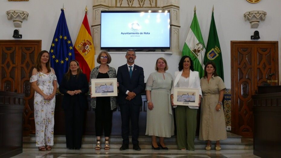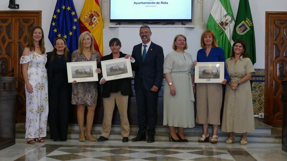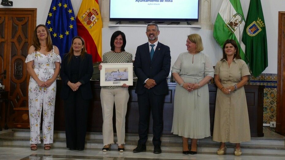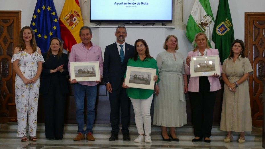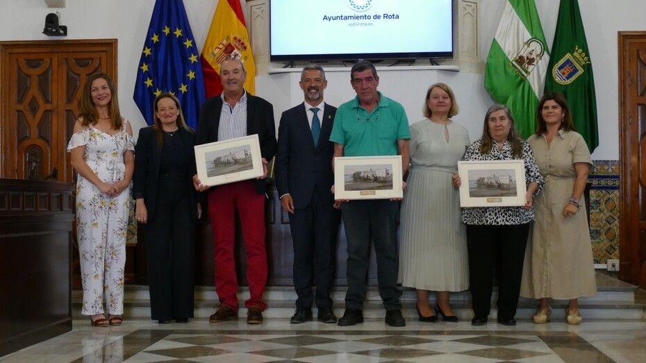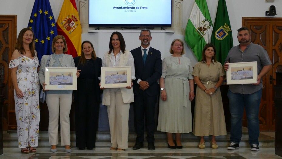 En un salón capitular del Palacio Municipal Castillo de Luna lleno, el alcalde de Rota, Javier Ruiz, la delegada de Personal, Encarna Niño, la presidenta de la Junta de Personal, Isabel Rebollo, y representante de los trabajadores, Carmen García, han sido los encargados de entregar las distinciones a los homenajeados que este año, se llevaban un regalo con mucha personalidad, una acuarela del pintor Tosar Granados enmarcada, al que el Ayuntamiento le ha agradecido su predisposición en esta colaboración de modo que el reconocimiento a los funcionarios fuera algo especial. También colaboraba el escultor Jonathan Alonso con las metopas entregadas a los jubilados. Este año además, al coincidir con el 45 aniversario de los ayuntamientos democráticos, se ha hecho especial hincapié en la aportación que todos los alcaldes, concejales y funcionarios públicos han realizado con su trabajo y vocación de servicio a que Rota prospere y sea la ciudad que es hoy día.