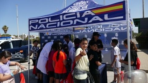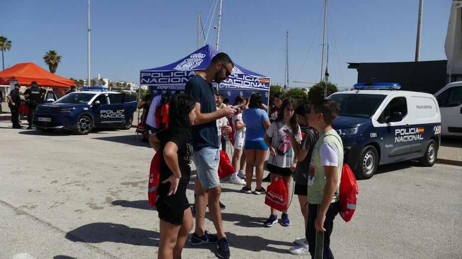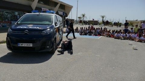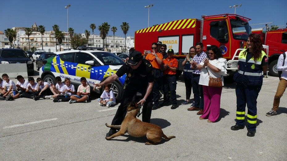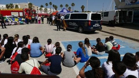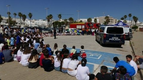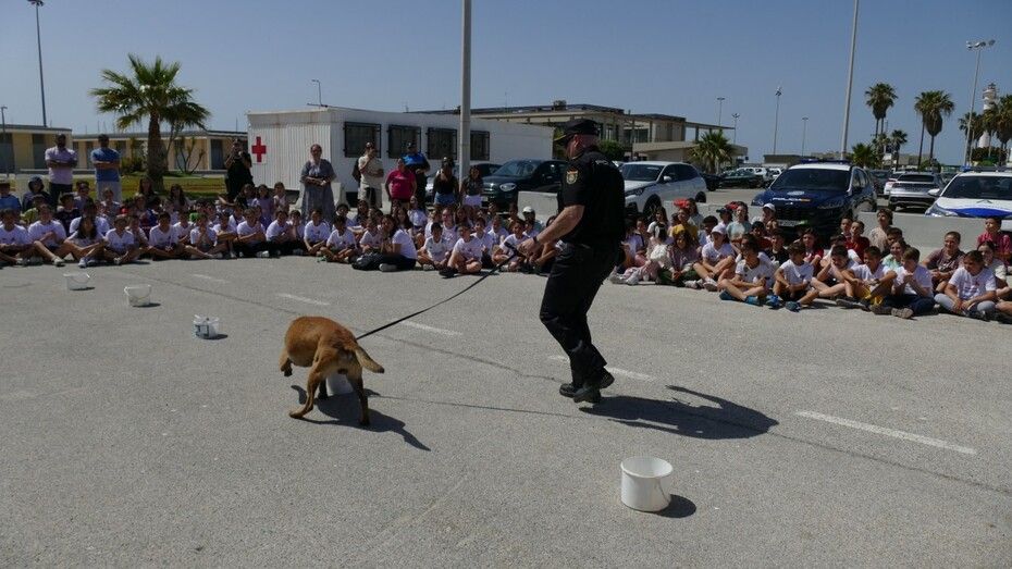 El circuito continúa por la labor que realiza la Policía Local en materia de seguridad vial, con varias actividades y recordatorio de cómo ser un buen peatón o conductor, y se pasa a un stand de la Policía Nacional en el que de la mano de la Policía Científica, se les enseña a los menores cómo se detectan las huellas dactilares cuando están en curso de una investigación. La Policía Nacional además, ha colaborado con varias exhibiciones de la Unidad Canina de Cádiz en las que varios perros han demostrado ante los escolares sus habilidades para detectar explosivos y drogas. Ha sido de las muestras más aplaudidas ya que a los alumnos siempre sorprende ver cómo el entrenamiento de los perros policía da tan buenos resultados.
