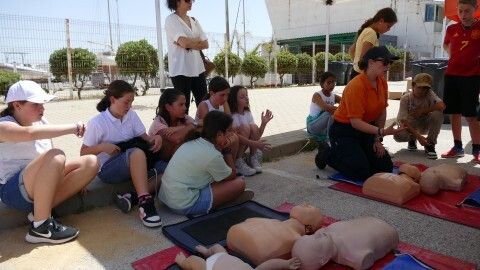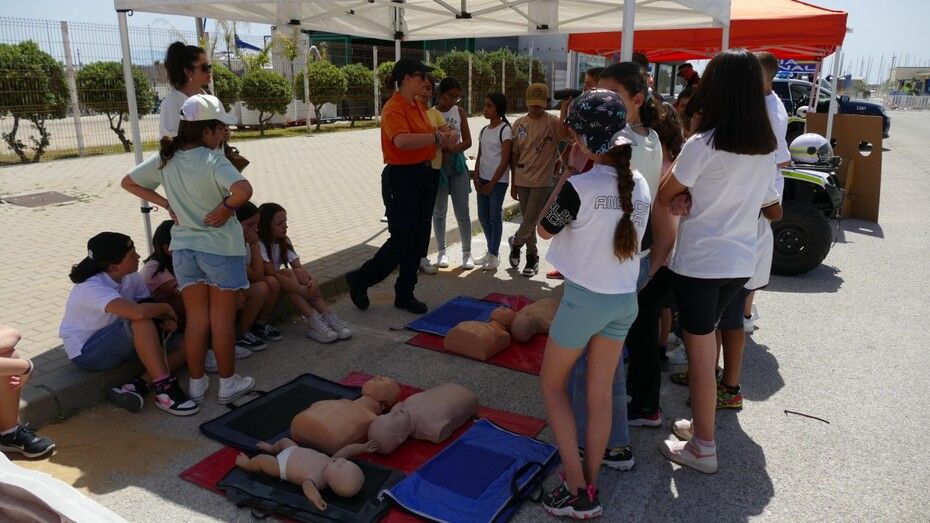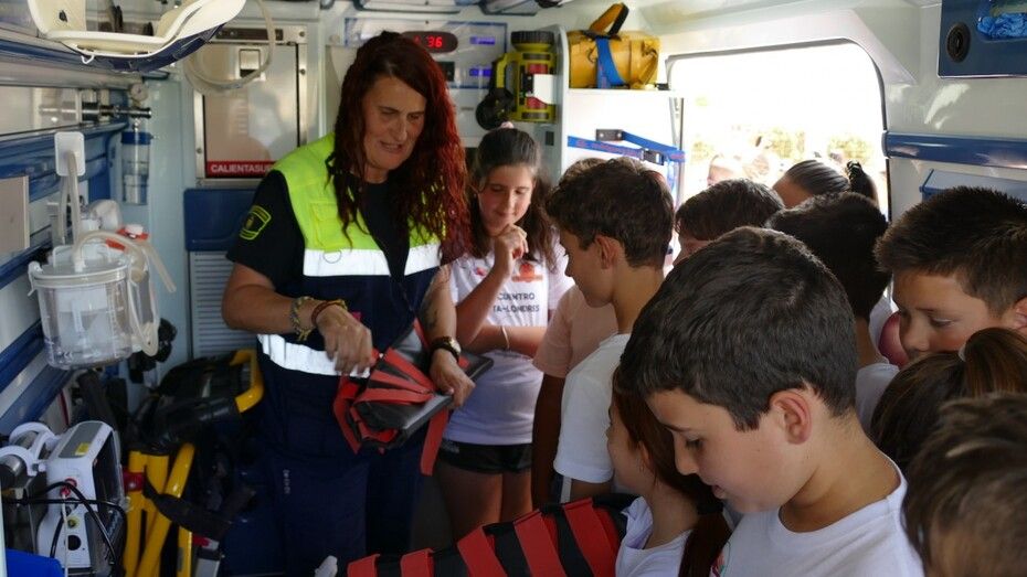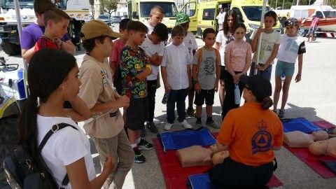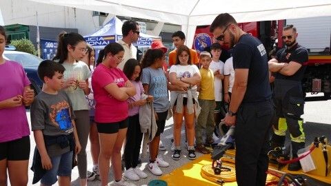 Además de mostrar los uniformes y herramientas con las que trabaja este servicio municipal contraincendios, los niños pueden aprender a usar un extintor para apagar un fuego controlado, y hay un breve taller en el que se explica a los escolares cómo realizar una reanimación cardiopulmonar o cómo actuar en caso de atragantamiento en bebés. Son técnicas sencillas que los alumnos deben aprender y que pueden serles muy útiles en situaciones sobrevenidas.