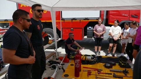 ![[Img #223489]](https://rotaaldia.com/upload/images/05_2024/6551_p2470268.jpg) Además de mostrar los uniformes y herramientas con las que trabaja este servicio municipal contraincendios, los niños pueden aprender a usar un extintor para apagar un fuego controlado, y hay un breve taller en el que se explica a los escolares cómo realizar una reanimación cardiopulmonar o cómo actuar en caso de atragantamiento en bebés. Son técnicas sencillas que los alumnos deben aprender y que pueden serles muy útiles en situaciones sobrevenidas.