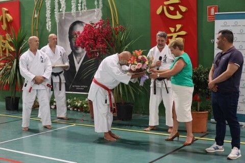 El 7º Gasshuku ‘Miyahira Memory’, que es un entrenamiento internacional en memoria del maestro principal de la escuela Shorin Ryu, Miyahira Katsuya 10º Dan Hanshi, se celebra cada año en un país y en esta ocasión, se elegía Rota, algo que la delegada de Deportes del Ayuntamiento de Rota, Luisa Fernández, que estuvo en el acto de clausura, quiso agradecer. A la ceremonia también asistió el delegado de Participación Ciudadana, Manuel Jesús Puyana.