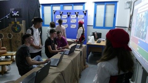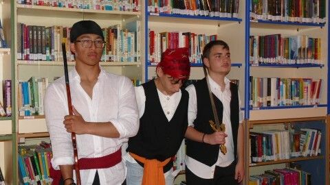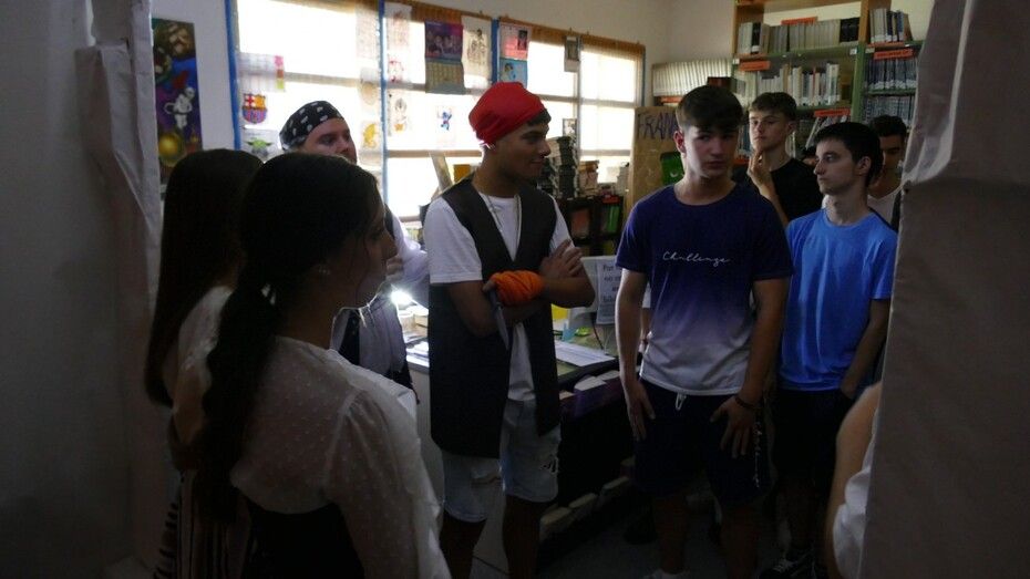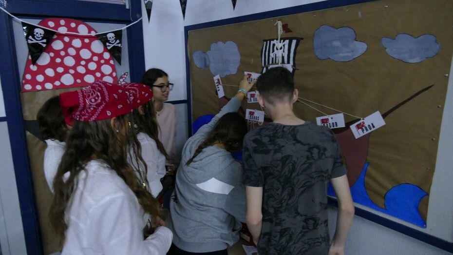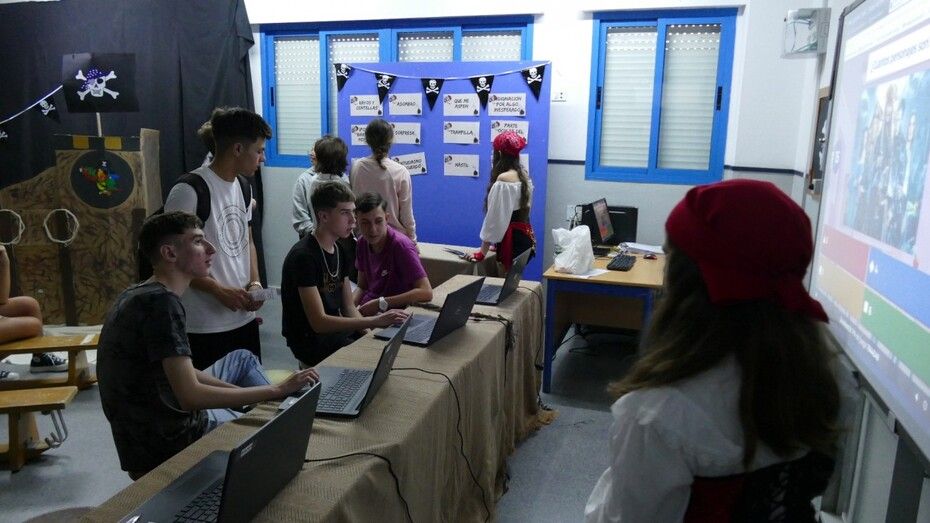 Los estudiantes del IES Castillo de Luna vivían hoy, y lo harán también mañana viernes, una jornada escolar mucho más liviana y dinámica, pero igual de formativa, visitando por aulas los proyectos de sus compañeros y aprendiendo más sobre la piratería, los piratas más conocidos, las batallas piratas más famosas, novelas sobre piratería, espacios destacados en aquella época como la Casa de Contratación y su función o incluso jugar a juegos tradicionales como el Trivial, el '¿Quién es quién?', el teléfono escacharrado, la búsqueda de expresiones y palabras piratas en paneles así como trabajos de robótica todo en torno a la misma temática que envuelve al instituto en estos dos días. A eso se sumaba un taller de orientación deportiva para la búsqueda de un tesoro a través de pistas por el centro, adivinanzas, juegos de verdadero y falso y una amplia variedad de actividades.