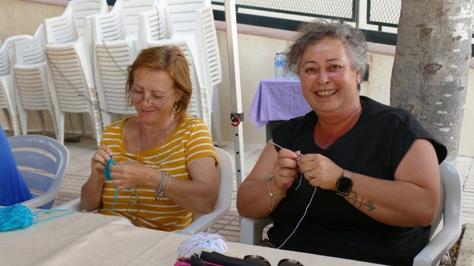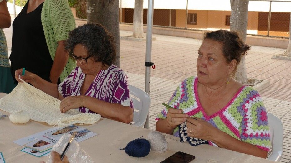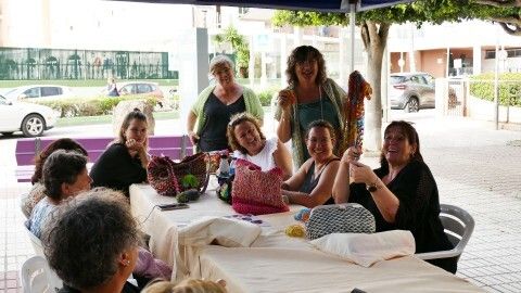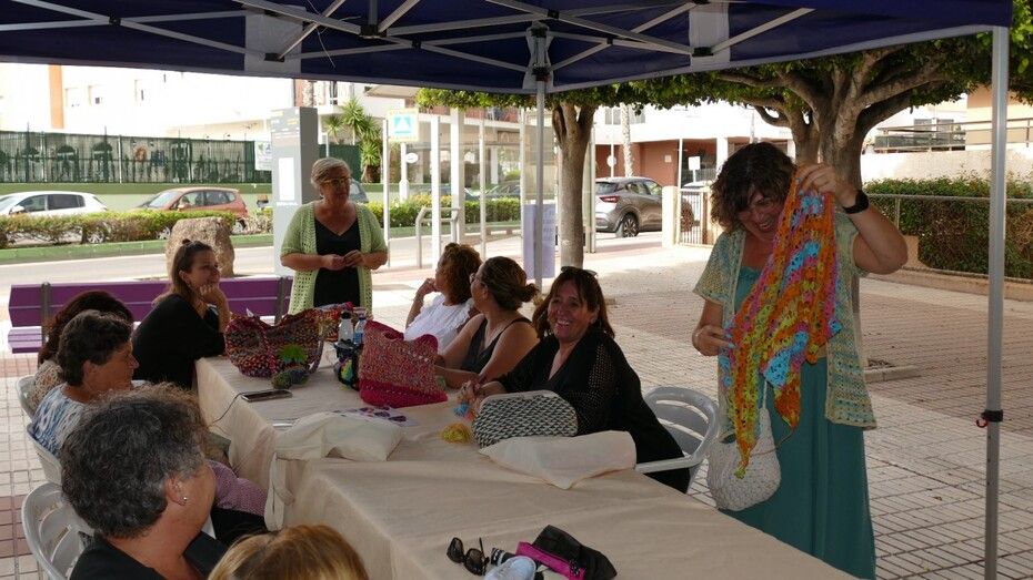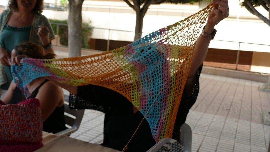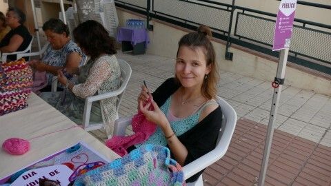 La delegada de Igualdad, Laura Almisas, ha estado un rato esta tarde con las mujeres que se han animado a tejer valorando positivamente la actividad, que precisamente partió de las alumnas del taller de ganchillo y que la delegación municipal secundó viendo una gran idea.