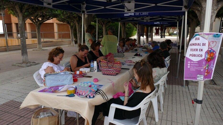 Desde el año 2005 que se instauró en Denver el Día Mundial de Tejer en Público, cada 8 de junio se celebra una jornada especial, que en Rota se ha adelantado a este jueves, con un buen balance, especialmente, porque quien ha participado ha echado un buen rato intercambiando ideas, opiniones, solventando dudas y sobre todo, tejiendo.