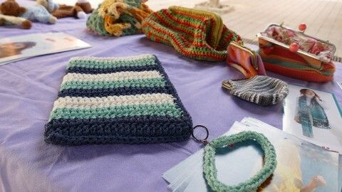 Con ganchillo se puede hacer de todo lo imaginable y una pequeñísima muestra estaba hoy en el stand de la plaza Clara Campoamor, junto a la delegación de Igualdad, donde había bolsos, rebecas, mantas, pañoletas, colchas, muñecos para niños, monederos, etc.
