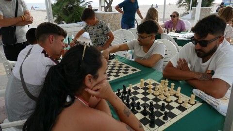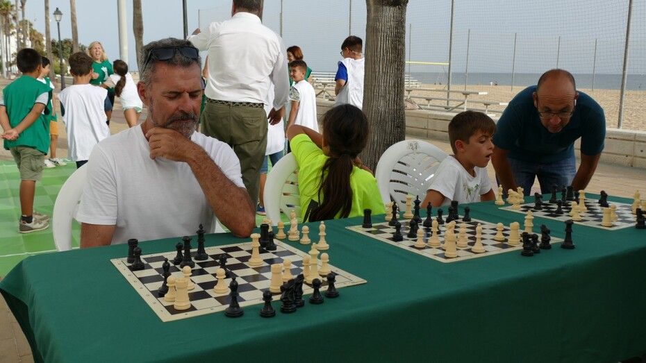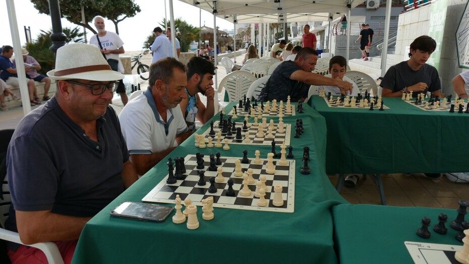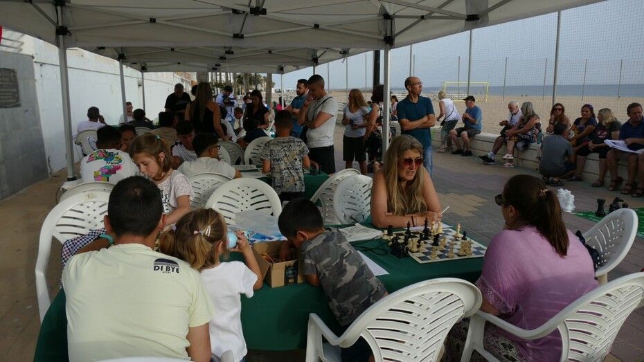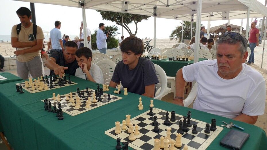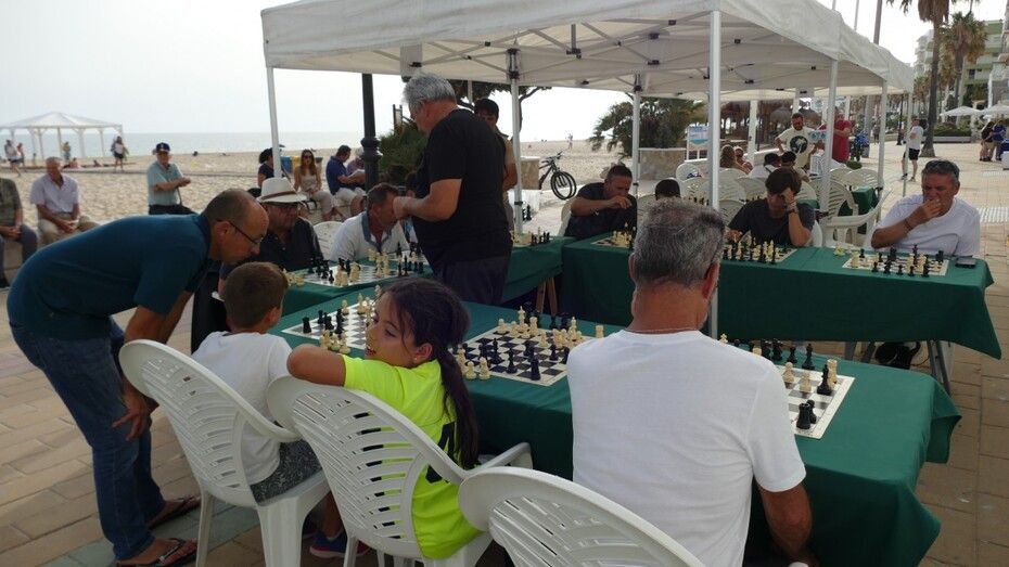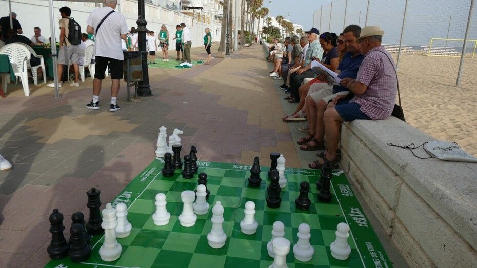 El paseo marítimo de la Costilla ha sido el escenario perfecto, conjugando un escenario ideal con la playa de fondo, con un sitio de paso y cómodo, para esta Fiesta del Ajedrez que proponía partidas libres y clases gratis de ajedrez con monitores titulados de forma simultánea.