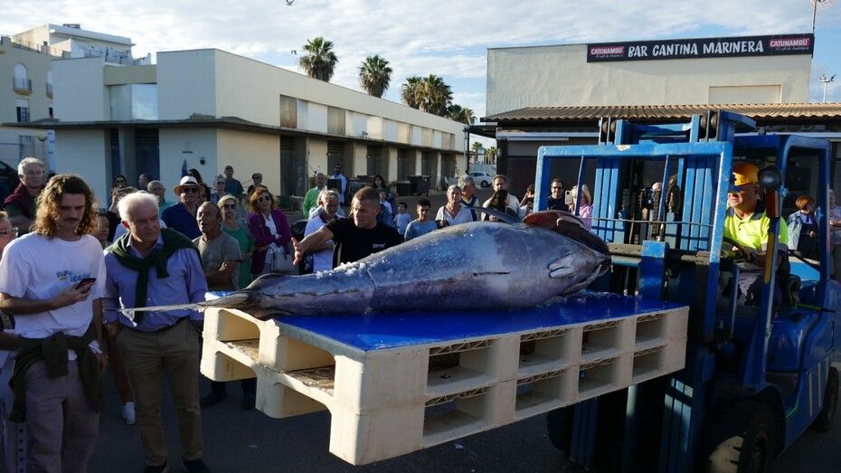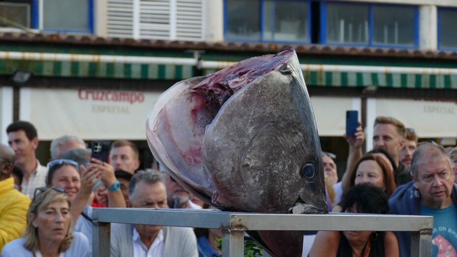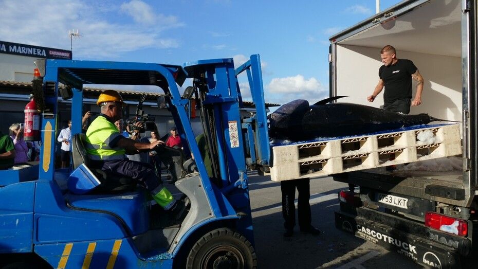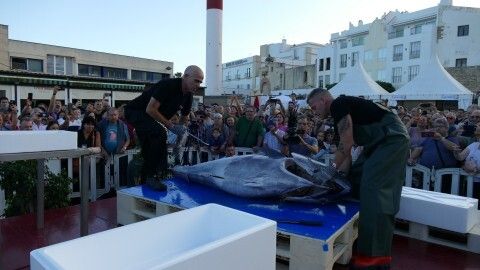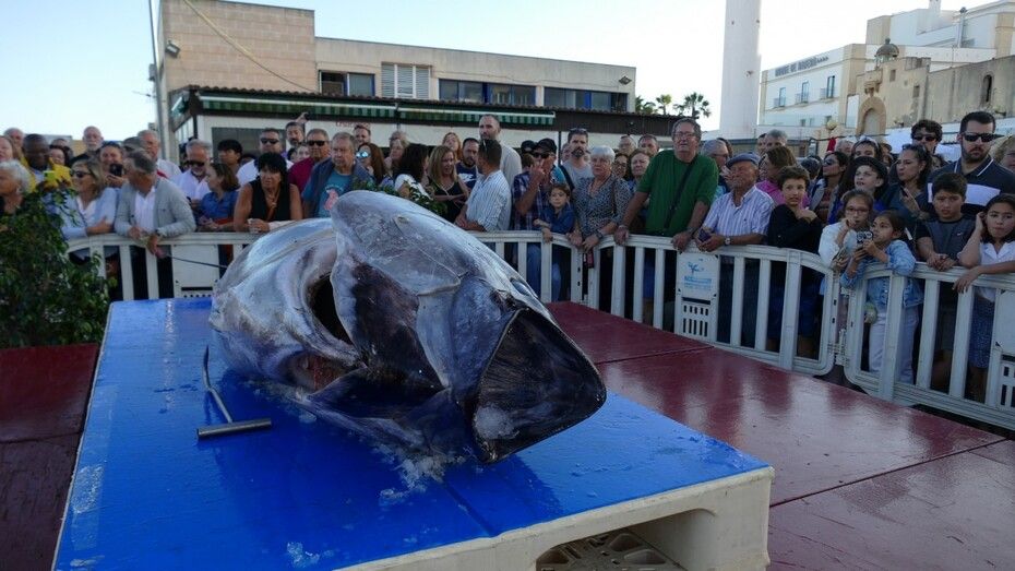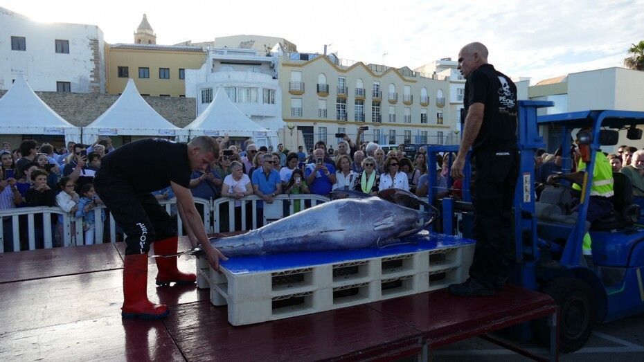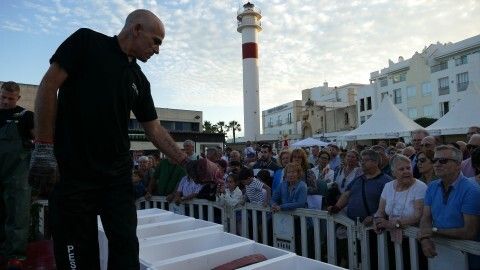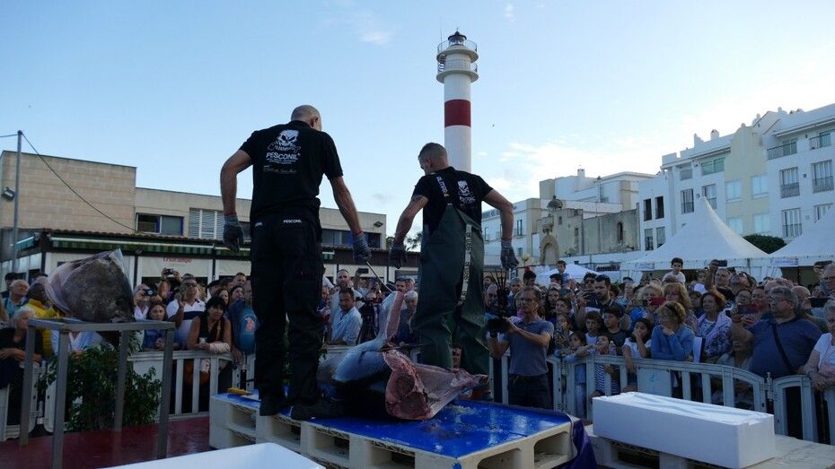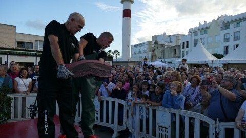 El ronqueo del atún reúne en el puerto pesquero a mucho público disfrutando de este arte milenario