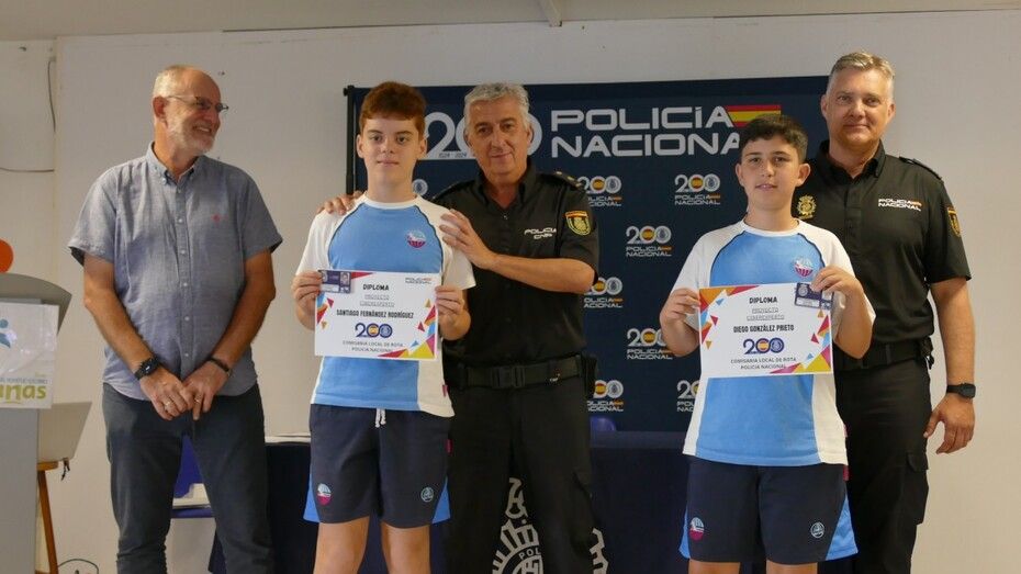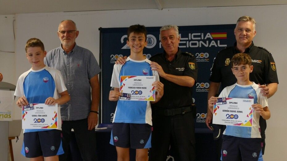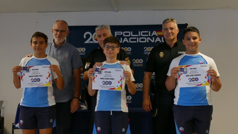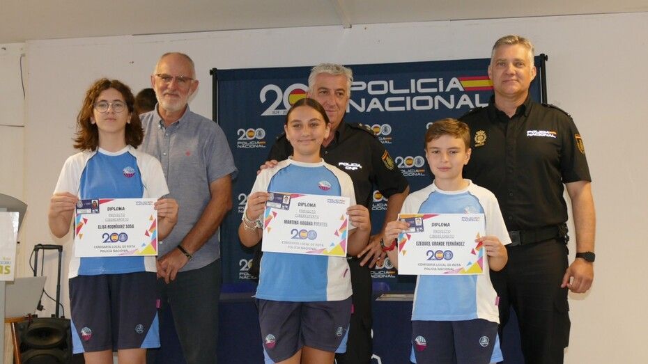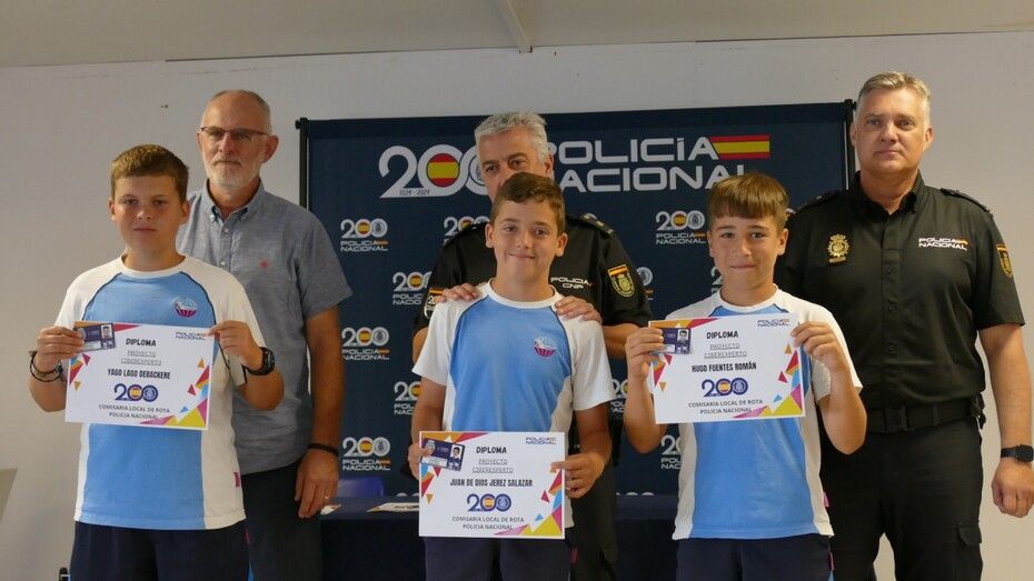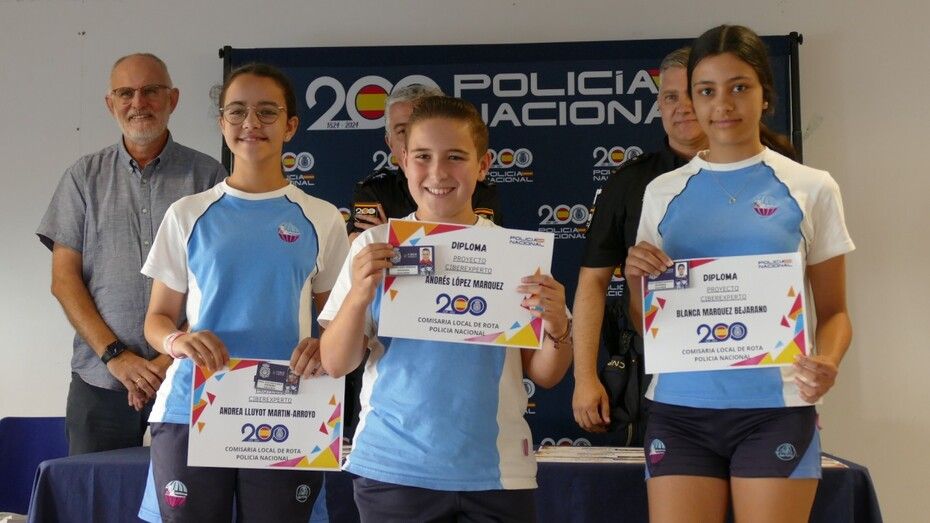 El comisario de la Policía Nacional de Rota, Antonio Jesús Calle, el subinspector Jesús Collado, y el coordinador del Plan Director de la Subdelegación del Gobierno de España en la provincia de Cádiz, Manuel Barranco, han participado en el acto de entrega oficial de los carnés que acredita a estos alumnos de Rota como ciberexpertos. Es el único colegio de la provincia de Cádiz que en este curso ha participado en estas sesiones formativas que los centros educativos pueden solicitar a través de la Policía Nacional. Un hecho este que ha valido para darle aún más realce al acto, transmitiendo a los jóvenes el valor de tener unos conocimientos que a su vez, los hace responsables de que la gente de su alrededor haga un buen uso de redes sociales e internet. Y es que la participación en esta formación trata de eso, de formar a los escolares que se inician en el uso de las nuevas tecnologías para que tengan conciencia de la necesidad de hacerlo de forma responsable y las consecuencias que puede tener llevar a cabo prácticas contrarias.
