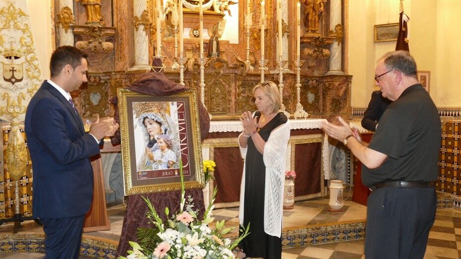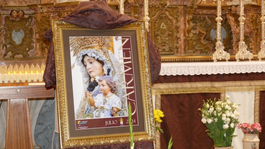 Esta mañana, tras la misa de doce, en la capilla de la iglesia de Nuestra Señora de la O en la que está la imagen de la virgen del Carmen, se ha llevado a cabo la presentación del cartel anunciador que supone ser la antesala de algunos de los cultos y actos que se celebrarán en las próximas semanas.