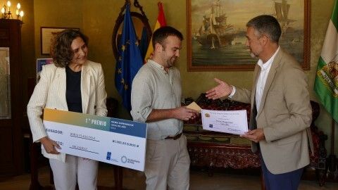 En el Palacio Municipal Castillo de Luna, el alcalde de Rota, Javier Ruiz, la delegada de Fomento, Encarna Niño, la presidenta del Patronato de CEEI Bahía de Cádiz, Carmen Romero, y el gerente del CEEI Bahía de Cádiz, Miguel Sánchez-Cossío, han procedido a entregar a Borja Flagg Díaz los 1.000 euros de premio con los que estaba dotado este reconocimiento.