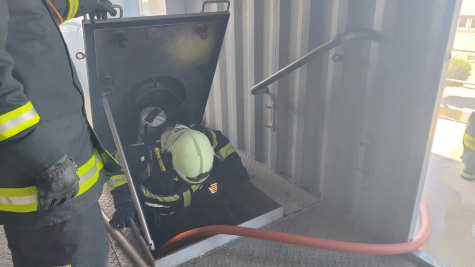 Otro de los ejercicios se centró en el simulacro de tener que sacar a una persona de un aljibe, garaje o espacio en el que fuera necesarios abrir una trampilla por estar dentro atrapado. Entre los miembros del grupo de primera intervención de Protección Civil y el equipo de la Armada que han participado en esta simulación, han sacado a un muñeco con peso real de una persona y lo han evacuado. Todo ello, controlando la comunicación y personal protegiendo tanto a la persona evacuada como al personal actuante ya que en este tipo de ejercicios, aunque sean simulacros, el humo es respirable pero las llamas y la temperatura es real para que la práctica se desarrolle en las condiciones más ajustadas a lo que se podrían encontrar ante una emergencia no simulada.