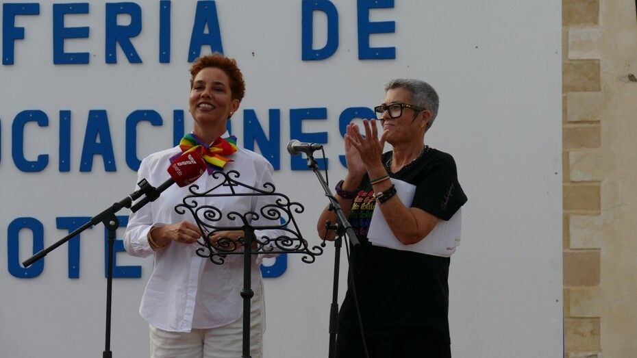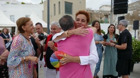 "El amor siempre vence al odio y al miedo" han dicho esta tarde emocionadas las madrinas del acto institucional que el Ayuntamiento de Rota celebra cada 28 de junio desde 2015. Y con esa frase, Dolores Fuentes González y Valle López Martínez, pareja desde hace más de 30 años, han resumido una parte del mensaje que en este Día del Orgullo LGTBIQ+ han querido transmitir a todos los presentes en una plaza de la Merced que no ha estado muy concurrida, pero desde la que se ha puesto el foco en la necesidad de seguir peleando para que, efectivamente, el amor esté por encima de todo, pueda ser libre y vivirse desde el respeto y la tolerancia a los demás.