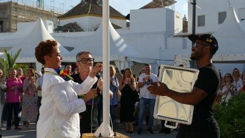La bandera del Orgullo ondea en Rota "por un municipio diverso y tolerante" con las 'Lolita' como madrinas