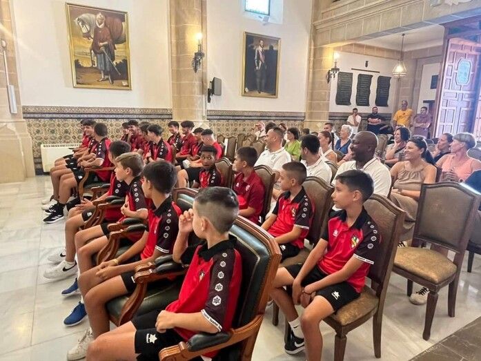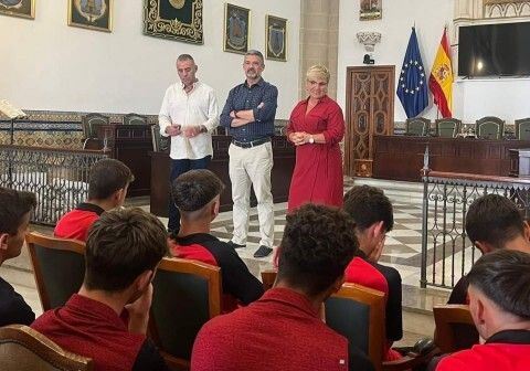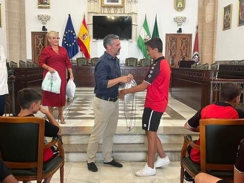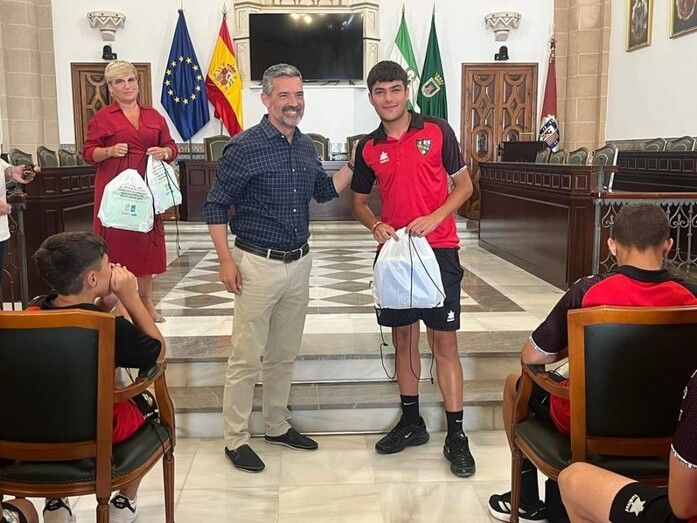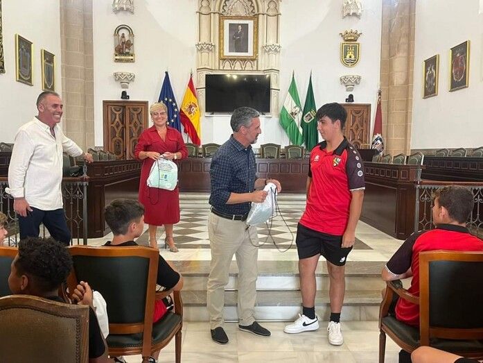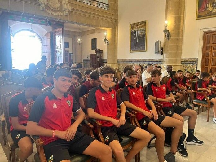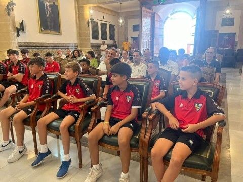 El alcalde de Rota, Javier Ruiz Arana, junto a la delegada municipal de Deportes, Luisa Fernández, recibió en la tarde de ayer miércoles a los equipos Benjamín A y Juveniles de la UD Roteña en el Palacio Municipal Castillo de Luna. Un encuentro que se organizó para felicitar a los equipos por la destacada temporada que han realizado, culminando con la proclamación de campeones en sus respectivas ligas.