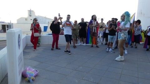 Acompañada de la batucada, de algunas personas que no son necesariamente del colectivo LGTBIQ+, pero que apoyan la defensa de los derechos de esta comunidad y se suman a sus reivindicaciones, entre los que estaban concejales del PP como miembros de la Corporación municipal, la Drag Queen ha llegado tras recorrer el paseo marítimo en una batea decorada para la ocasión, a la plaza que el Ayuntamiento de Rota dedicó a Pedro Zerolo. En su memoria ha dejado un ramo de rosas como ofrenda a los pies del monolito que da nombre a la pequeña plaza junto al faro de Rota, y desde allí, Samantha Ballentines ha manifestado su identificación con la bandera arcoíris, una insignia ha dicho, que representan los valores por los que muchas personas han muerto. Más allá de verse representada por la bandera española, que como es obvio, ha rematado, la representa por ser ciudadana de este país, se siente más identificada con la de su colectivo, recordando al activista fallecido y el peligro que ciertos derechos corren por la presencia y discursos de ciertos partidos y grupos de derecha.
