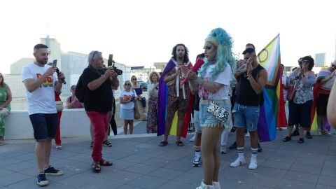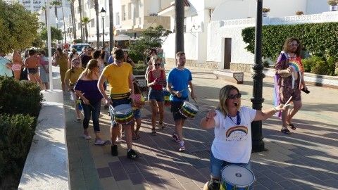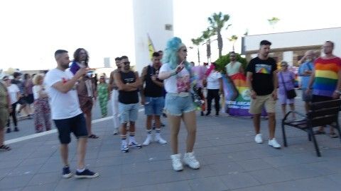 Pasadas las ocho de la tarde, con la presencia de la Drag Queen en plena plaza de la Costilla y la música siempre animada de la batucada 'Caipiriña', muchos han sido los ciudadanos que se han acercado a disfrutar del momento festivo y también reivindicativo de esta cita.