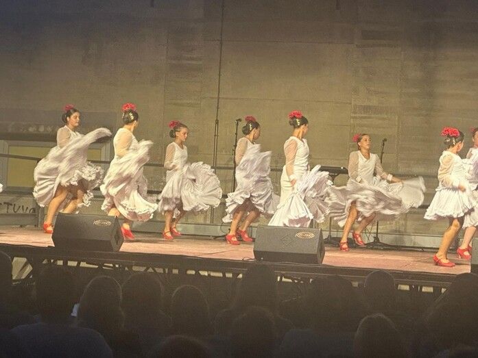 En los jardines traseros del edificio de la Tenencia de Alcaldía tuvo lugar esta cita con el flamenco que disfrutaron muchos ciudadanos, de todas las edades, que vieron pasar por el escenario a las alumnas de la escuela de baila de la veterana artista, con más de 30 años de profesión.