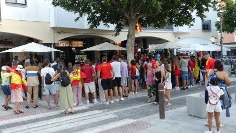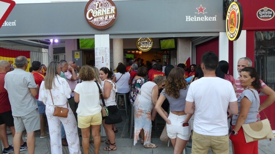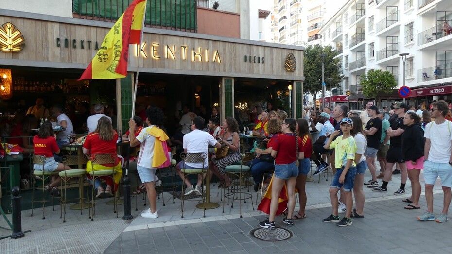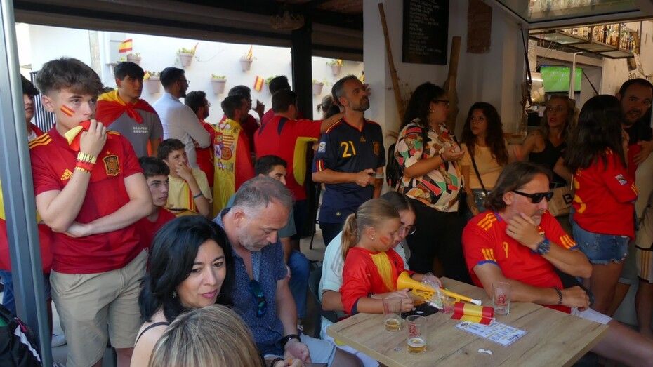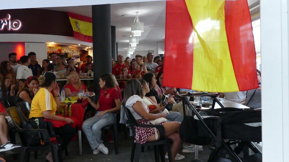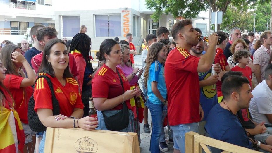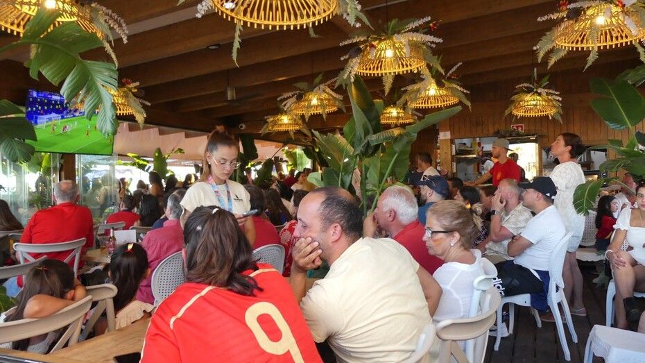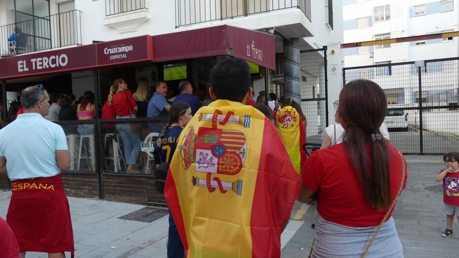 Este domingo, el día de playa se ha acortado para muchos porque había que animar a los futbolistas españoles en una gran cita que muchos han vivido en sus casas, con amigos y familia, y otros, ha preferido salir a la calle y verlo en los bares que disponían de gran pantalla para seguir el partido.